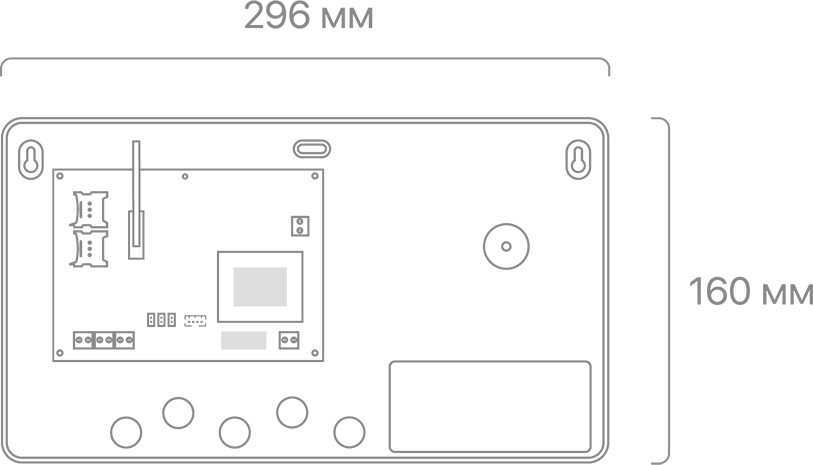 Датчик вскрытия корпуса Габаритные размеры без корпуса: 132×94×51 мм в корпусе «Контакт» под АКБ 1.2Ач: 296×160×90 мм в корпусе «Контакт» под АКБ 7Ач: 296×250×90 м |