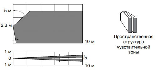- Узкая, протяженная зона обнаружения.
