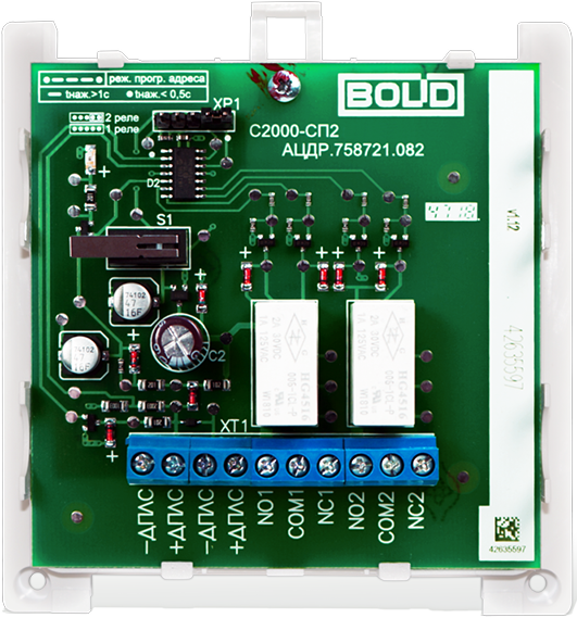 Независимое управление двумя реле через контроллер «С2000-КДЛ» от пульта «С2000»/«С2000М» или АРМ «Орион»/«Орион Про»
